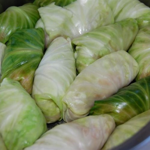 - Roll beef filling into a cabbage leaf, and place seam-side down in a pan
