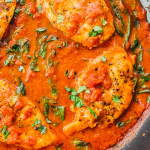 - Add Cajun seasoning and flour, toss to coat. Add diced tomatoes, tomato sauce, pepper flakes, and hot sauce and bring to a simmer.