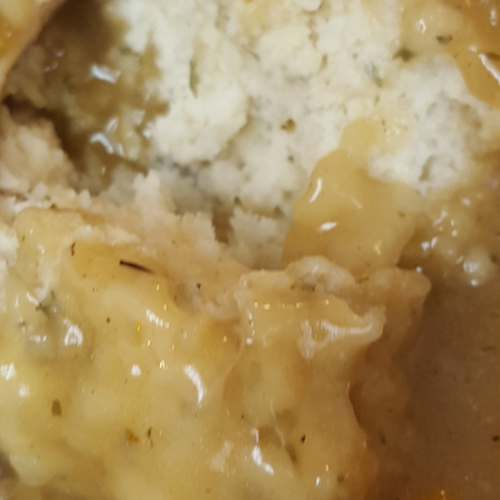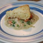 - 11) Drop 8 – 10 spoonfuls of the dumpling dough onto the top of the chicken mixture in the pot, cover and simmer for 10 – 15 minutes, until the dumplings are fully cooked.