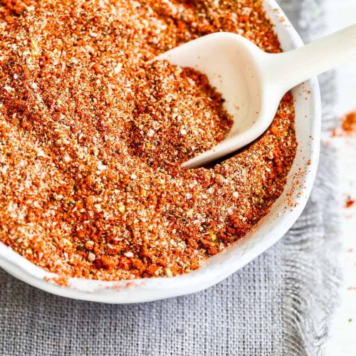 • Has a nice heat to it. When I make a gravy from the drippings, it is also quite spicy…in a nice way. The chili powder can be omitted if you don’t have any.