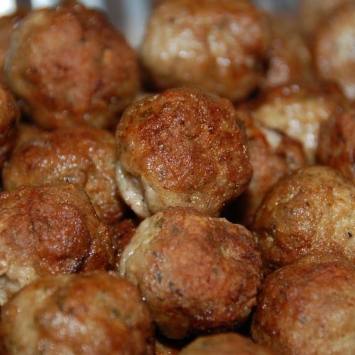 - In your palms, roll out ~36 little meatballs, about 1 Tablespoon each