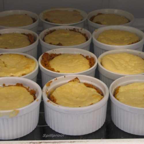 - Pour into pan with crust (springforms work well, as do pie plates, or ramekins).