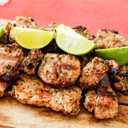 - Enough skewers to skewer the meat; I use 10 in. metal skewers in my cooking of which I need 2