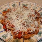 - Add another layer of boodles and add the rest of the meat sauce and the last of the grated cheese. (LOTS OF CHEESE!)