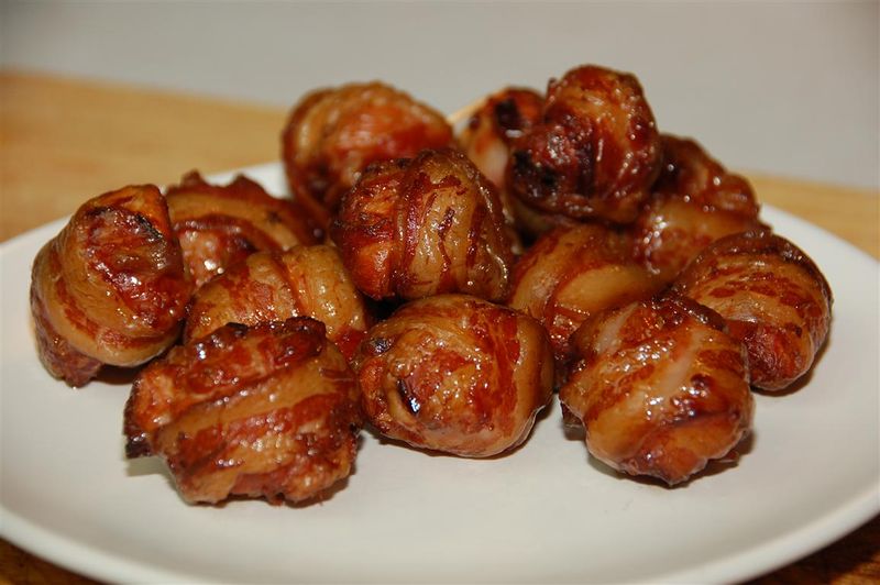 One of the best snacks ever. Bacon seals in all the juices, so good!