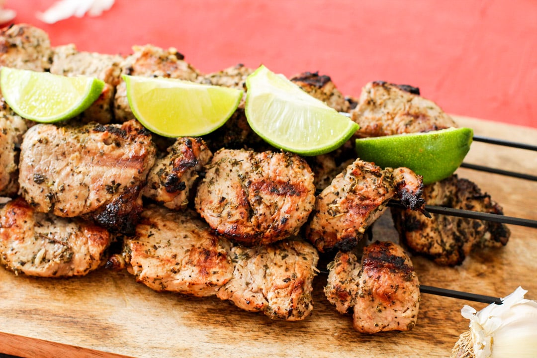 Soft skewers of pork, flavoured by a lime ginger marinade that goes well with chicken too!