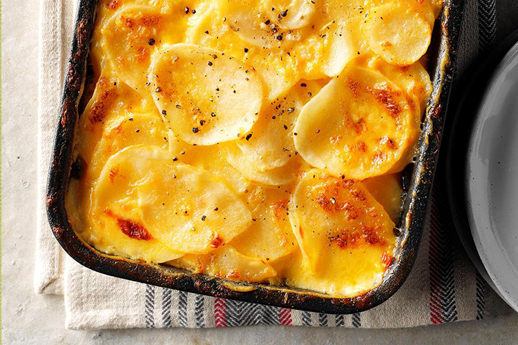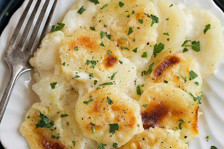 No cream, no milk Scalloped Potatoes! This one takes time, but it's so worth it. Love this recipe!