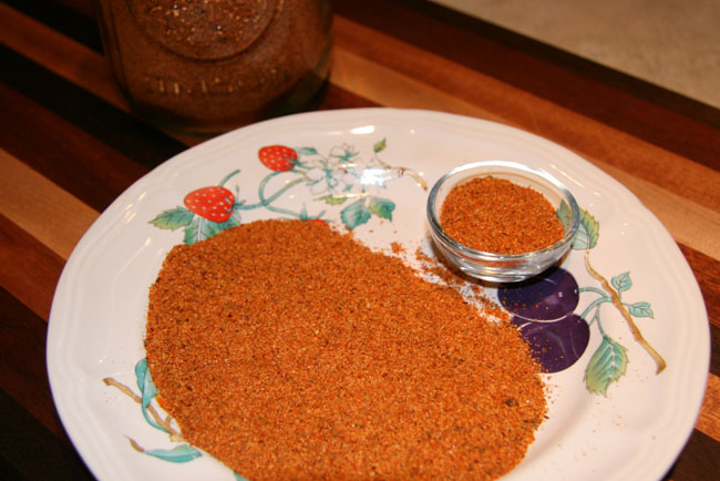 Great mid-heat rub that I use on roast chickens, wings and thighs.