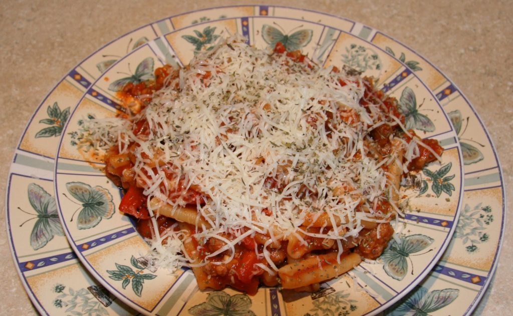 Garlic, sausage and peppers,, with some lovely pasta and heaps of parm!