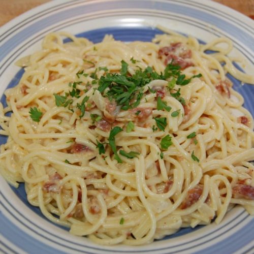 1 pound bacon, diced. (Yes, pancetta is traditional)