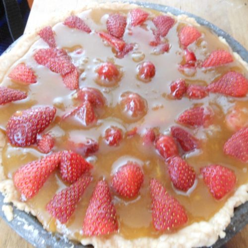 Place washed u0026 core strawberries. Pat dry. Place flat end down (pointy end up) in precooked pie shell.