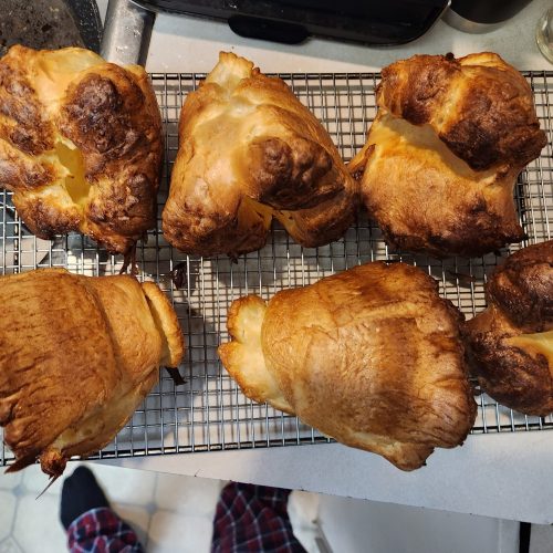 - When ready, flip Yorkshires in the popover pan, to drain any oil.
